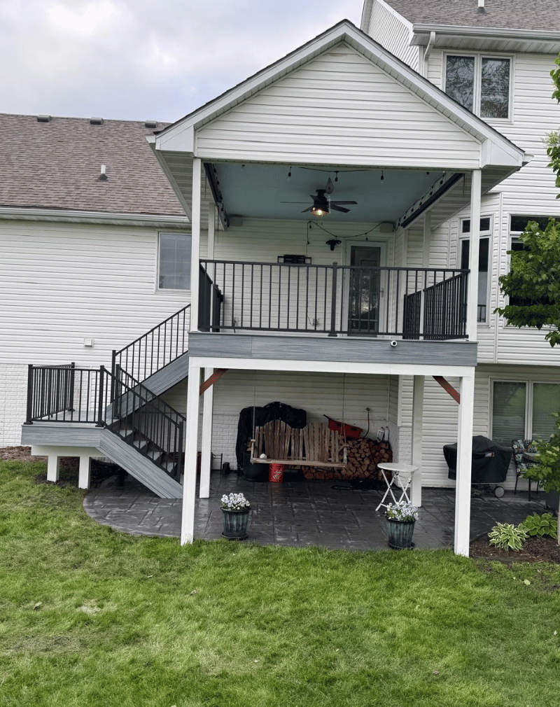 Enhance your backyard with a custom covered patio from Ankeny Deck Specialist. We design stylish, durable outdoor spaces that provide shade, comfort, and perfect areas for relaxing or entertaining.